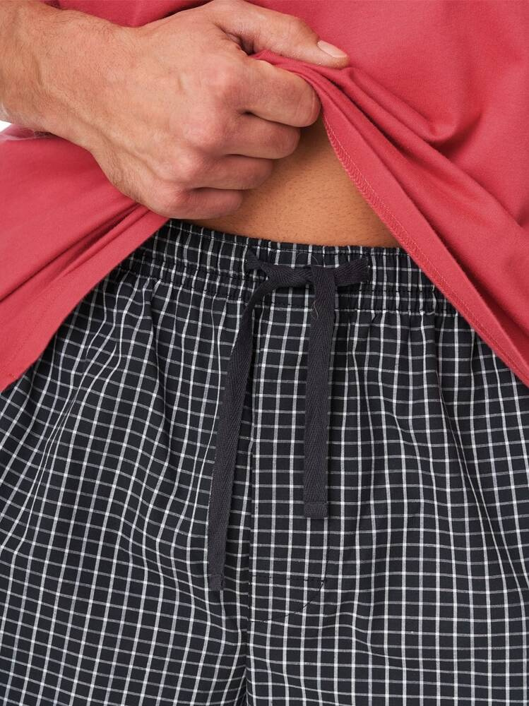 Piżama męska wykonana z wysokiej jakości miękkiej bawełny. Model o klasycznym kroju. Koszulka z krótkim rękawem.Do kompletu krótkie spodenki z kieszeniami .