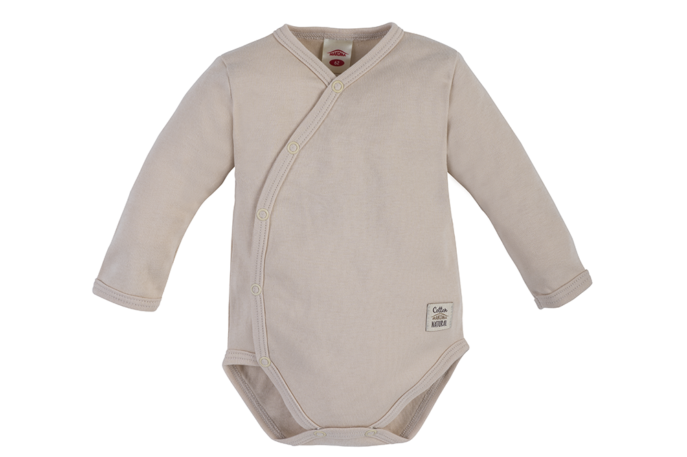 03244G "Giraffe" Body dzidziuś z długim rękawem Makoma gładkie beżowy