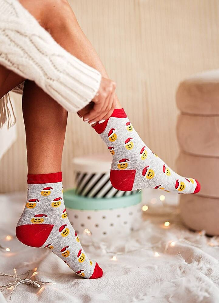 1283-011 Emotki Świąteczne Skarpety damskie Milena - 23 szary