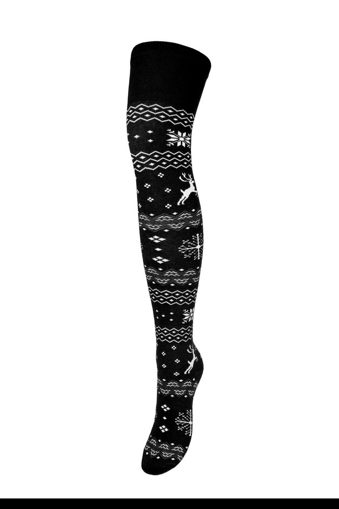 1276 Zakolanówki damskie świąteczne Milena - czarny