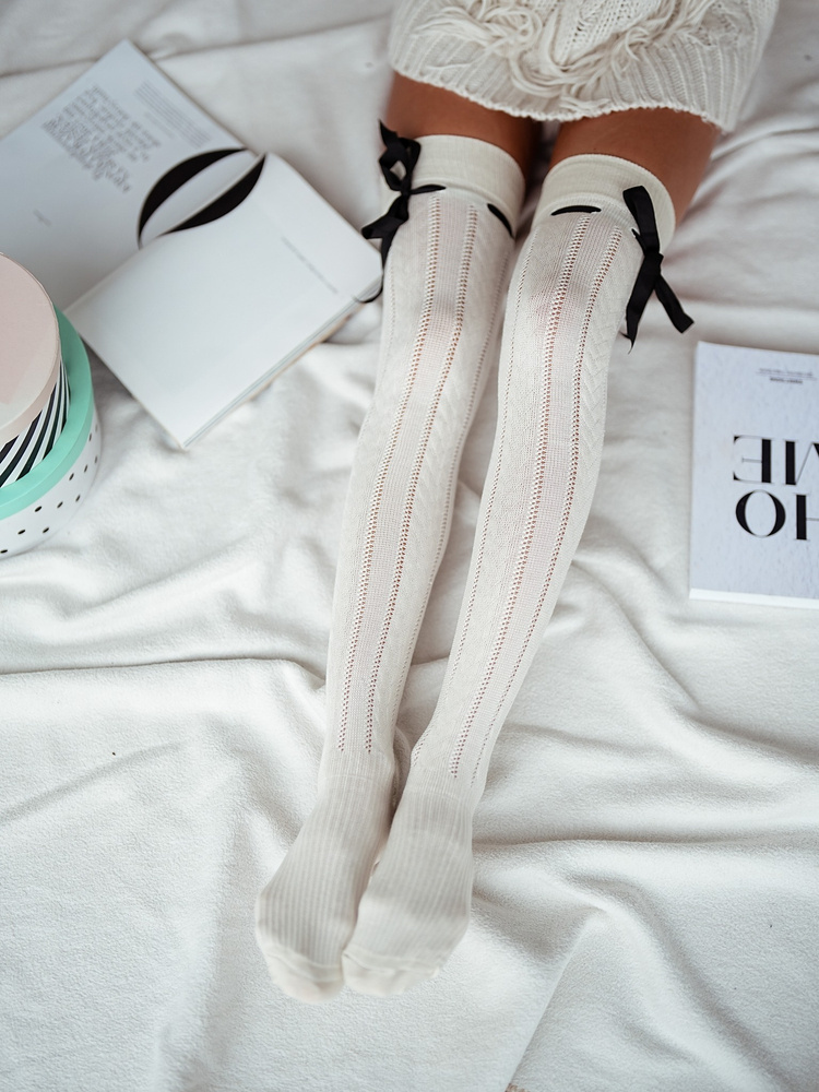 835 Wstążka Zakolanówki damskie Milena - ecru