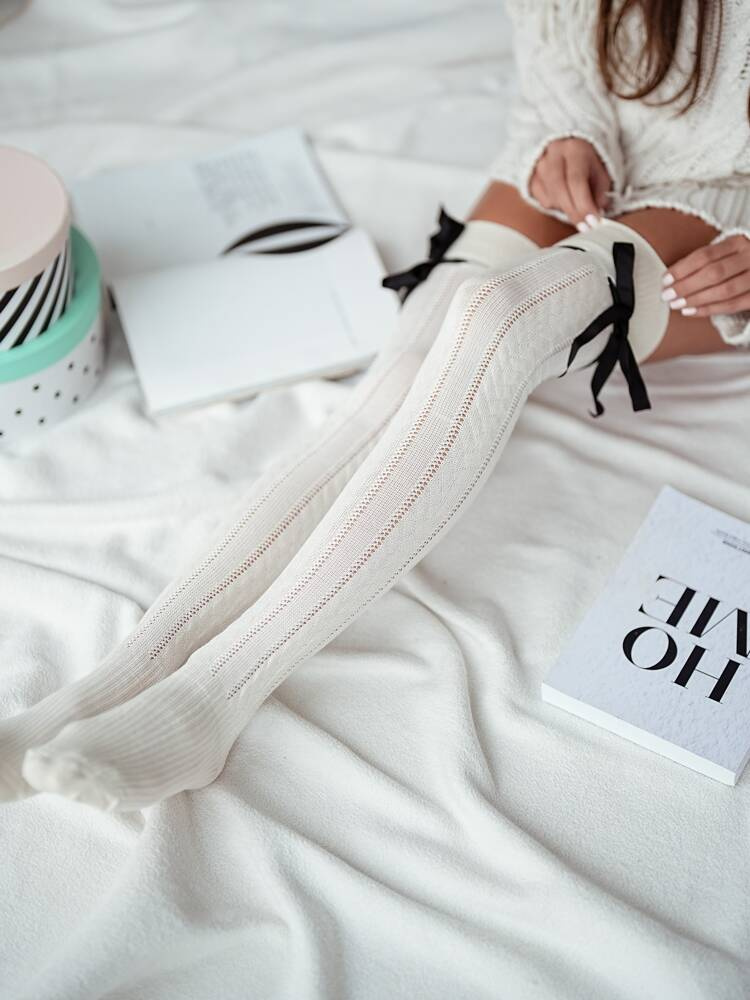 Opinie o 835 Wstążka Zakolanówki damskie Milena - ecru