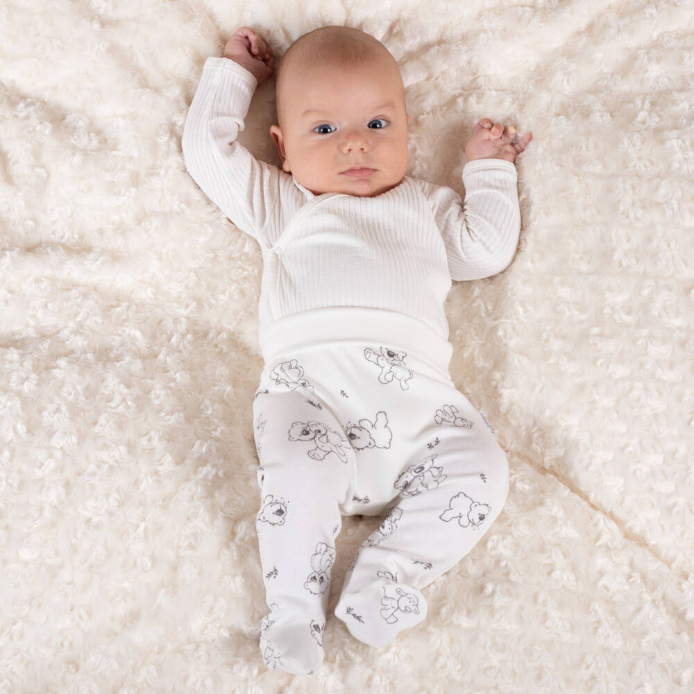 Zapytaj o produktWygodne i miękkie półśpioszki, uszyte z kremowej drukowanej bawełny w grafitowe misie i owieczki. Wysoka jakość materiału została potwierdzona certyfikatem Oeko-Tex Standard 100 Tekstylia godne zaufania. Półśpioszki mają luźny fason i lekko obniżony stan, by pomieścić pieluszkę, posiadają szeroki, bezuciskowy ściągacz w pasie zapewniający pełny komfort maluszkowi.