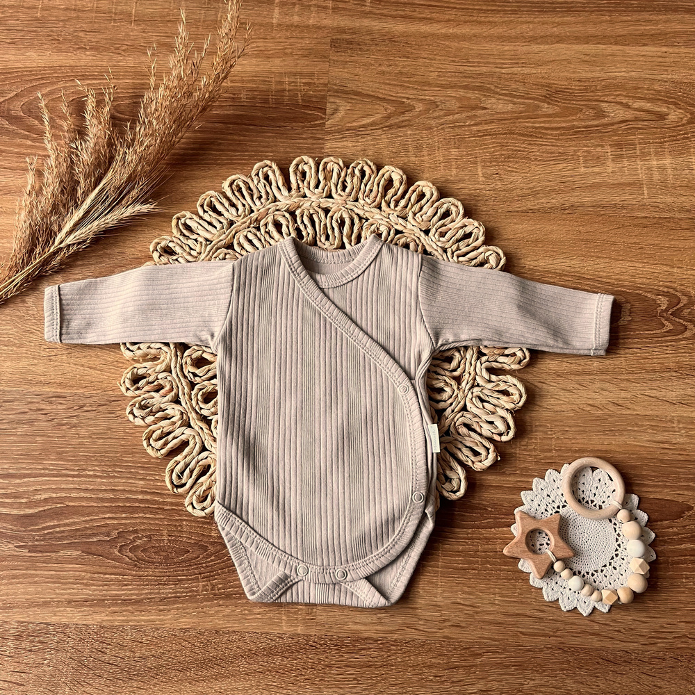 BDAB015 EkoBaby Body kopertowe z długim rękawem Mamatti - beżowy