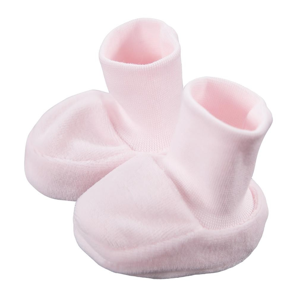 Buciki niemowlęce ze ściągaczem z miękkiej i przyjemnej w dotyku bawełny. Niezbędne w wyprawce dla noworodka. Idealnie komponują się z pozostałymi ubrankami z tej kolekcji.