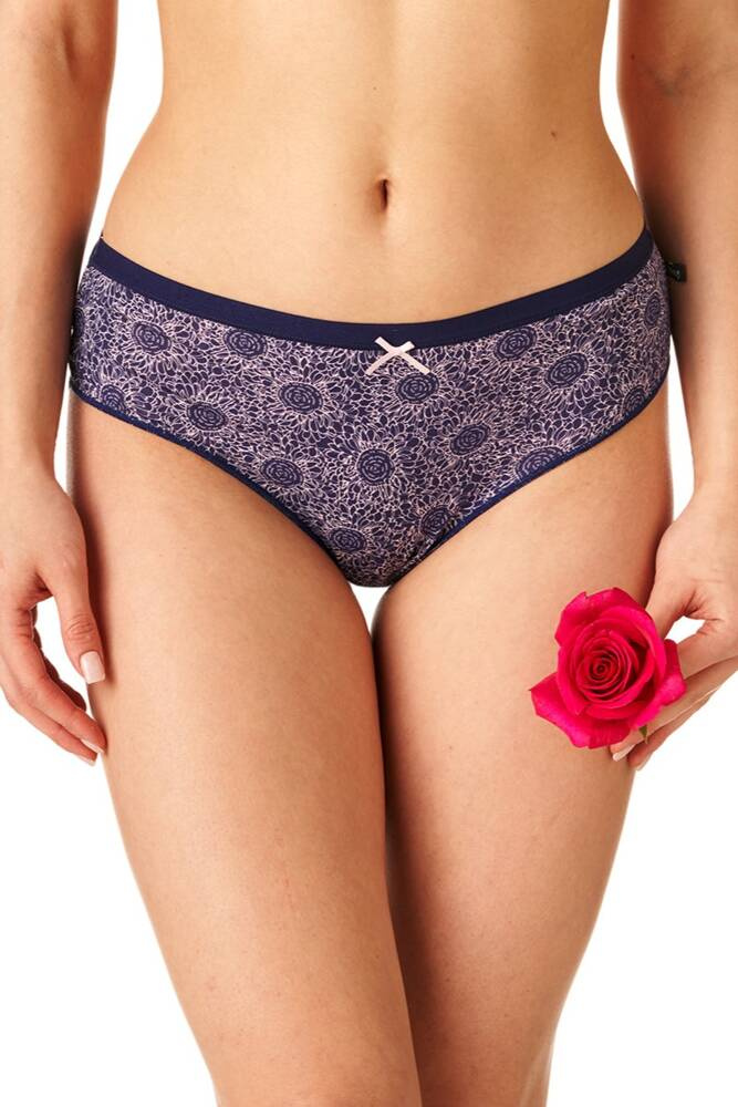 Figi damskie wykonane z wysokiej jakości gładkiej bawełny. Krój bikini o wyższej linii talii, zdobione delikatną koronką .