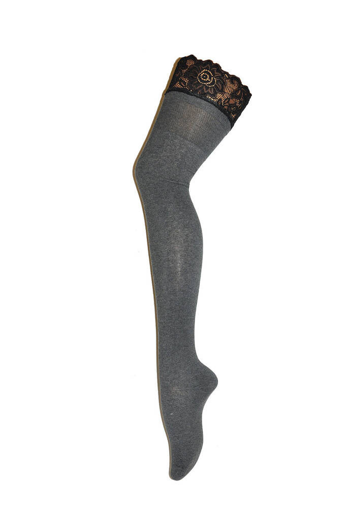1085 Szeroka Koronka Zakolanówki damskie Milena - grafitowy