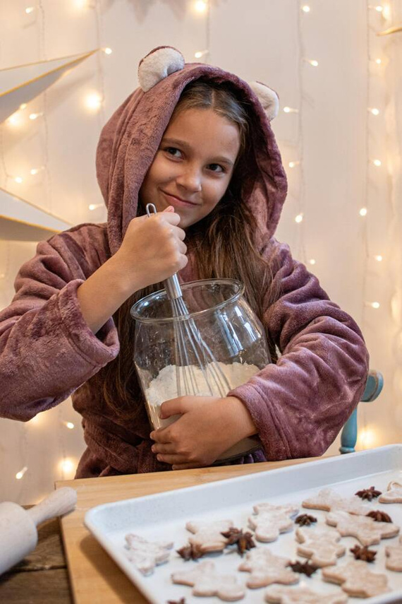 Szlafrok dziecięcy firmy FOREX o prostym kroju z kapturem. Długość do kolana, po bokach kieszenie, w pasie wiązany na pasek. Całość jednolita. Na kapturze urocze uszka. Szlafrok świetnie dopasowuje się do kształtu ciała, jest niezwykle miękki i lekki, wykonany z dzianiny typu soft. Otulenie się nim po kąpieli to sama przyjemność!