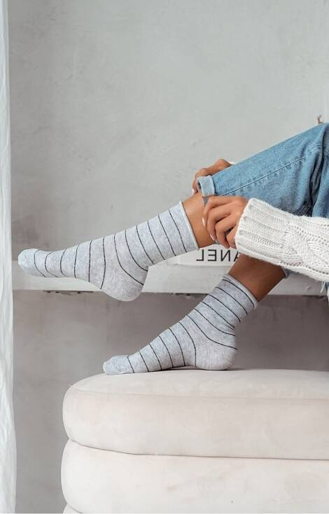 0200-059 Paski lurex Skarpety damskie Milena - szary
