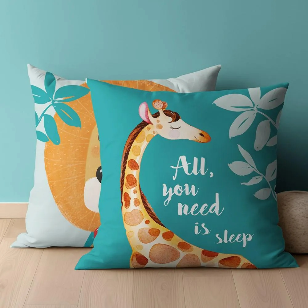 PSBA 23B Mayamoo 26 Poszewka bawełniana Dwustronna Żyrafa Lew  Detexpol zielony