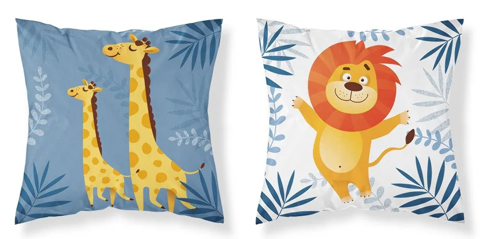 PSBA 20A Mayamoo 26 Poszewka bawełniana Dwustronna Żyrafy Lew Detexpol niebieski