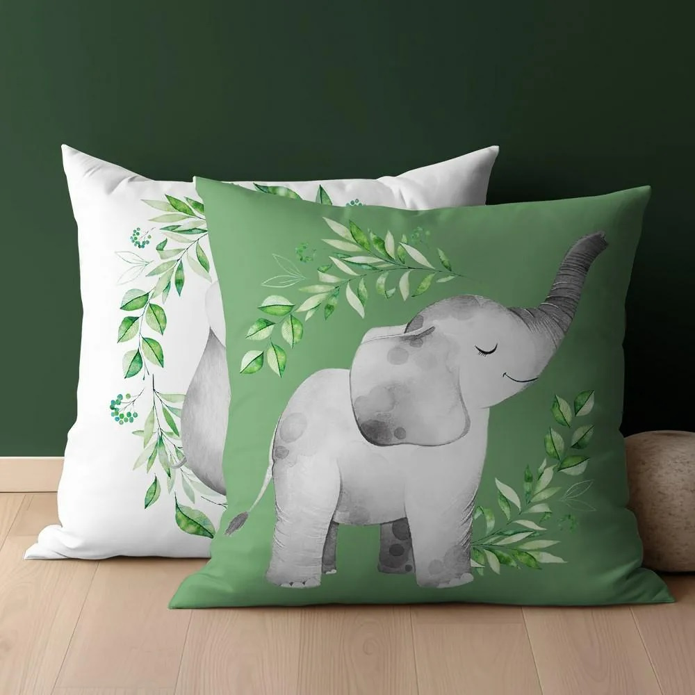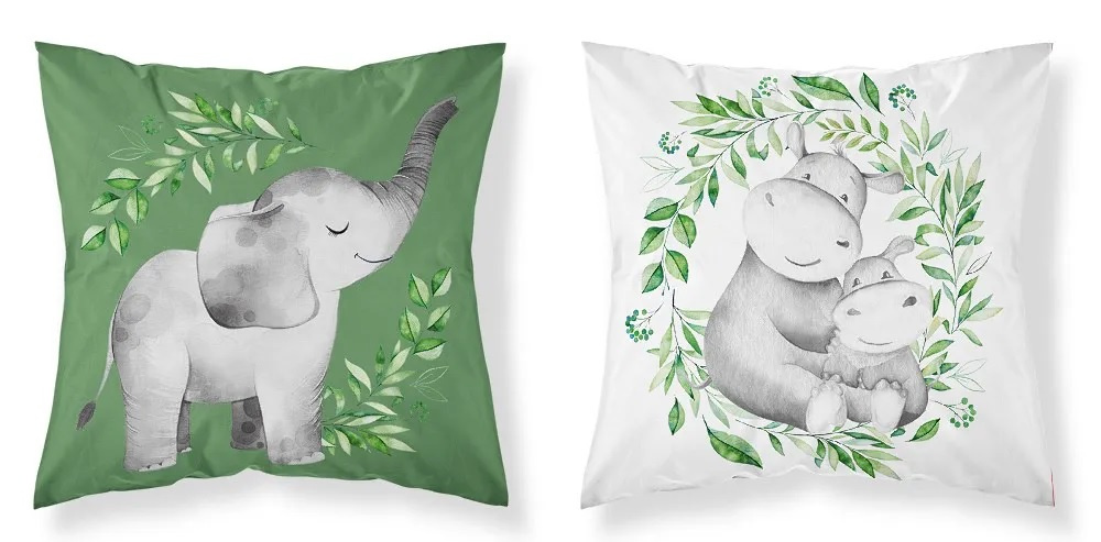 PSBA 17B Mayamoo 26 Poszewka bawełniana Dwustronna Słoń Hipopotamy Detexpol zielony