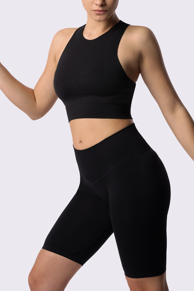 Bikery sportowe wykonane w technologii seamless z przędzy Nilit Innergy. Właściwości termoregulacyjne pobudzają mięsnie do dodatkowej pracy, co realnie wpływa na zwiększenie wydajności podczas treningu. Ściągacz V-line modeluje talię, a przerobienie na pupie podkreśla pośladki. Idealnie sprawdzi się w komplecie z biustonoszem sportowym FLEX.