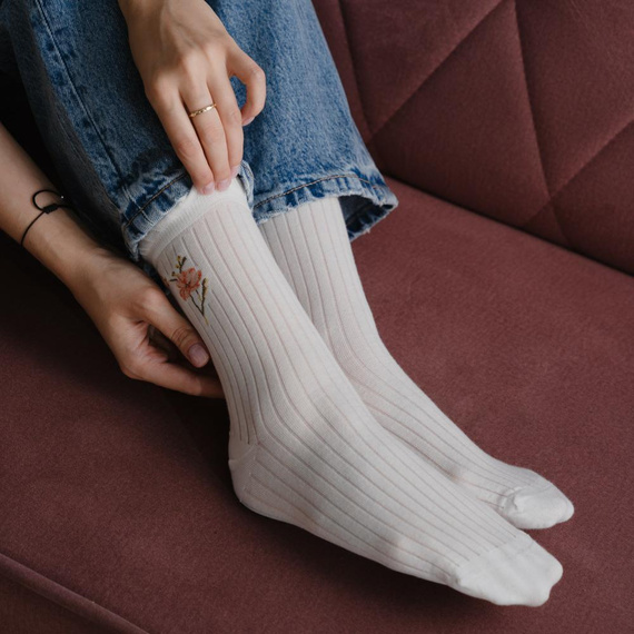 Skarpetki damskie wykonane z wysokiej jakości wzorzystej bawełny.