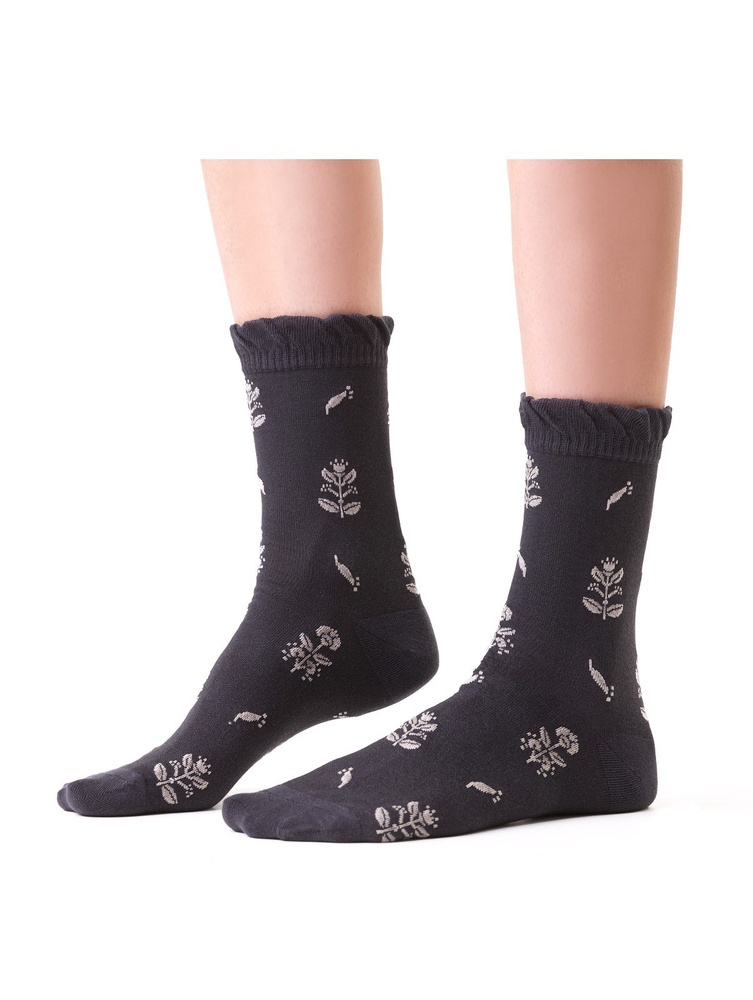 Skarpetki damskie wykonane z wysokiej jakości wzorzystej bawełny.