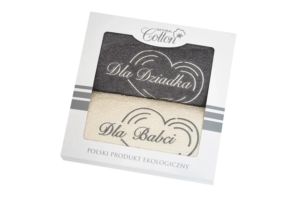 Dla Babci i Dziadka komplet ręczników w pudełku Extrapościel kremowy/szary jasny