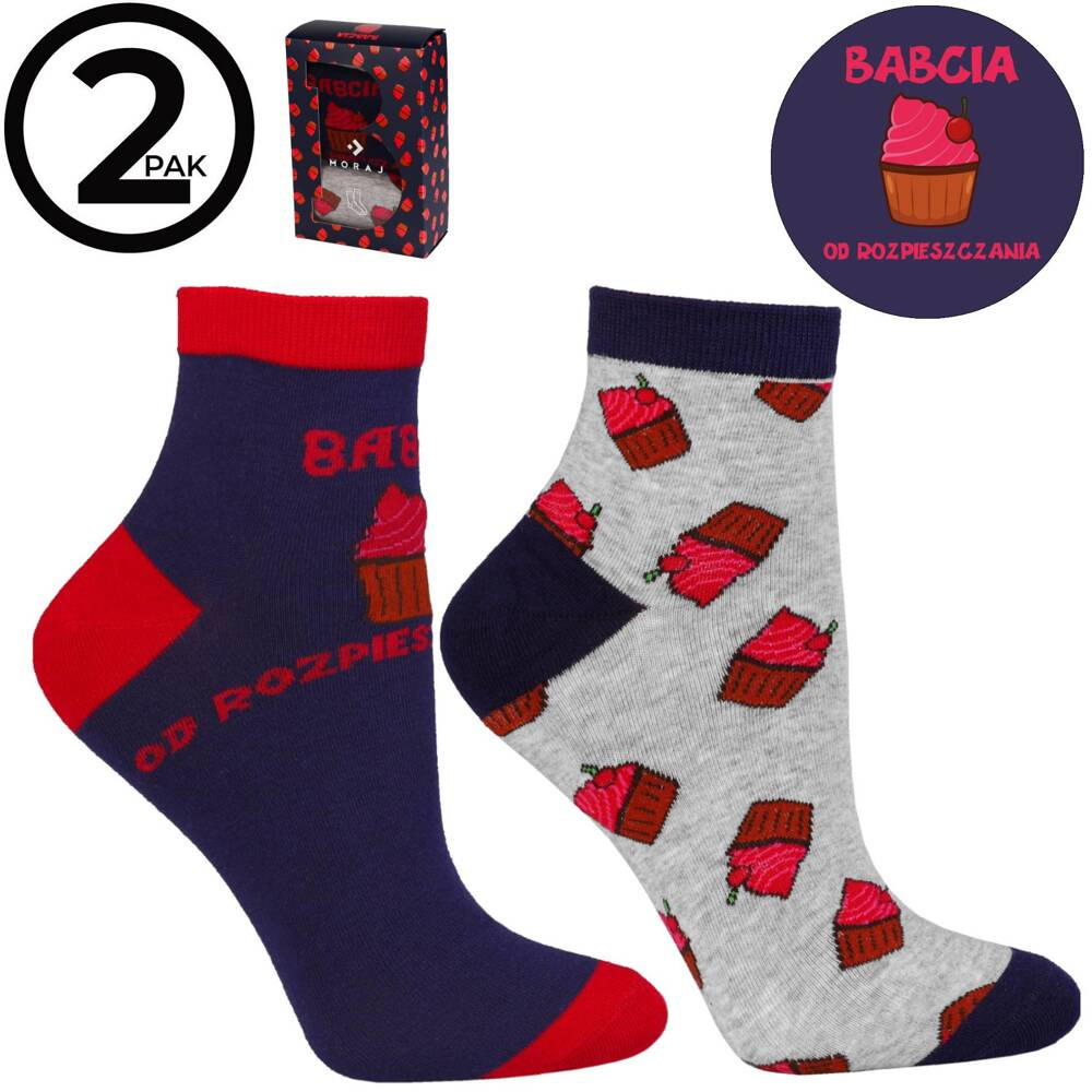 Ten model damskich skarpetek zaprojektowany został ze specjalną dedykacją dla naszych kochanych Babć. Zestaw w postaci dwóch par skarpetek jest zapakowany w ozdobne pudełko. Skarpety uszyte są z wysokiej jakości, oddychającej bawełny. Dzięki niewielkiej domieszce elastanu są rozciągliwe i znakomicie dopasowują się do stopy. Zakończone są elastycznym, nieuciskającym ściągaczem. Ozdobnie zapakowane skarpetki to znakomita propozycja na praktyczny prezent.