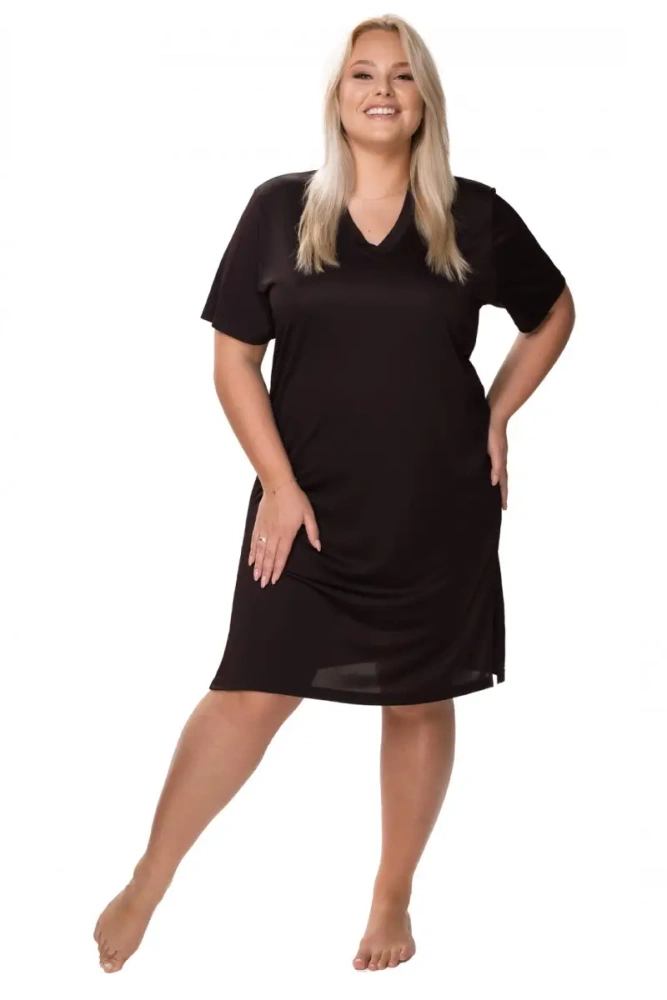 .Koszula nocna to kwintesencja elegancji i komfortu. Klasyczny fason, który podkreśla kobiecą sylwetkę, sprawia, że każda kobieta poczuje się wyjątkowo podczas wieczornego odpoczynku. Jej krótki rękaw dodaje lekkości, idealnie sprawdzając się w cieplejsze noce. Długość do kolan nadaje koszuli ponadczasowego charakteru, a dekolt w szpic dodaje jej delikatnej, kobiecej nuty.