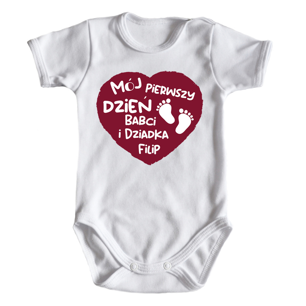 "Mój pierwszy dzień Babci i Dziadka + imię" Body krótki rękaw Moocha biały