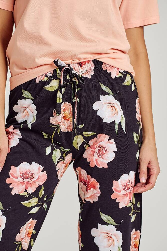 Piżama damska uszyta z wysokiej jakości bawełny. Koszulka z krótkim rękawem