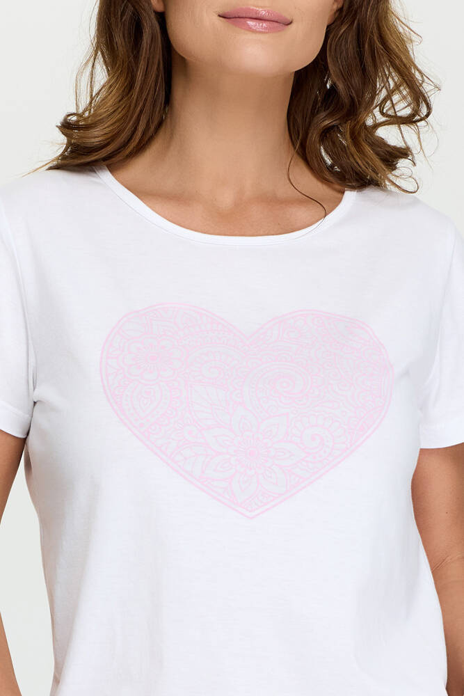 Piżama wykonana z miękkiej bawełny, zapewniająca komfort noszenia. Model o swobodnym kroju. Koszulka z krótkim rękawem i okrągłym dekoltem. Na przodzie ozdobny print w różowe serce. W komplecie z krótkimi spodenkami w kratę. W pasie delikatna guma.