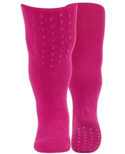 Rajstopy bawełniane z antypoślizgowymi gumeczkami pod stopą i na kolanach umożliwiają bezpieczną naukę chodzenia. Gładka struktura rajstop, gumka nie uciska w pasie. Nie mechacą się, nie krępują ruchów dziecka.