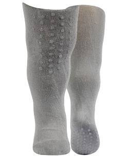 Rajstopy bawełniane z antypoślizgowymi gumeczkami pod stopą i na kolanach umożliwiają bezpieczną naukę chodzenia. Gładka struktura rajstop, gumka nie uciska w pasie. Nie mechacą się, nie krępują ruchów dziecka.