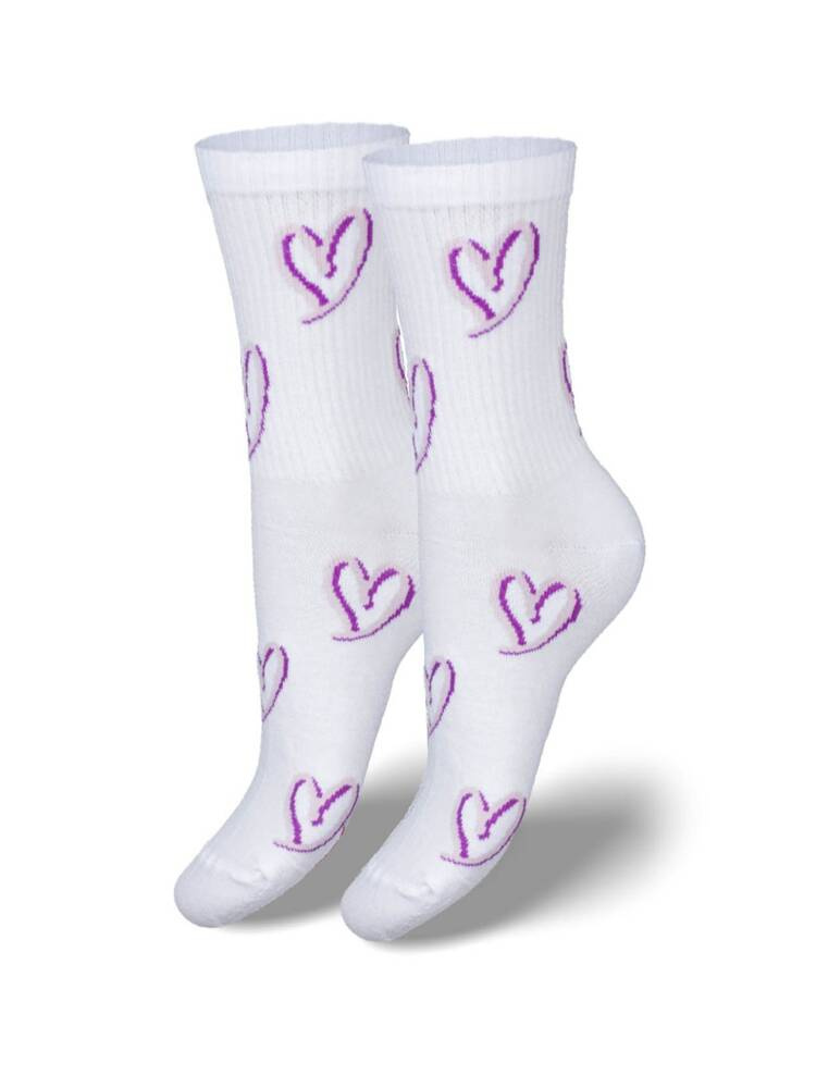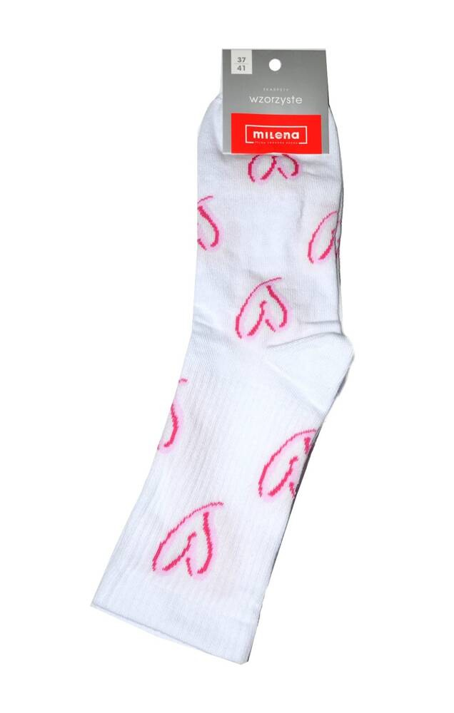 Eleganckie bawełniane skarpetki damskie ozdobione wzorami o tematyce walentynkowej.