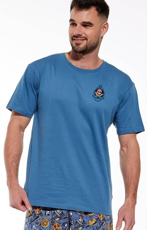Piżama męska z wysokiej jakości bawełny. Przód ozdobiony nadrukiem. Dekolt okrągły.