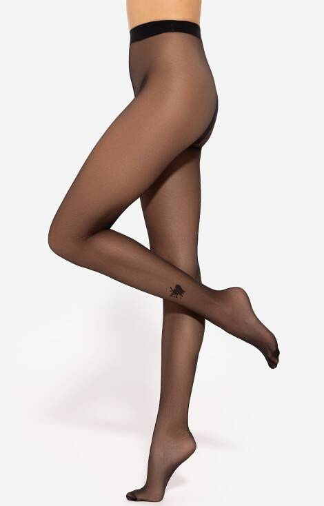 Rajstopy idealnie dopasowane. Na łydce wzór imitujący tatuaż z serduszkiem.
