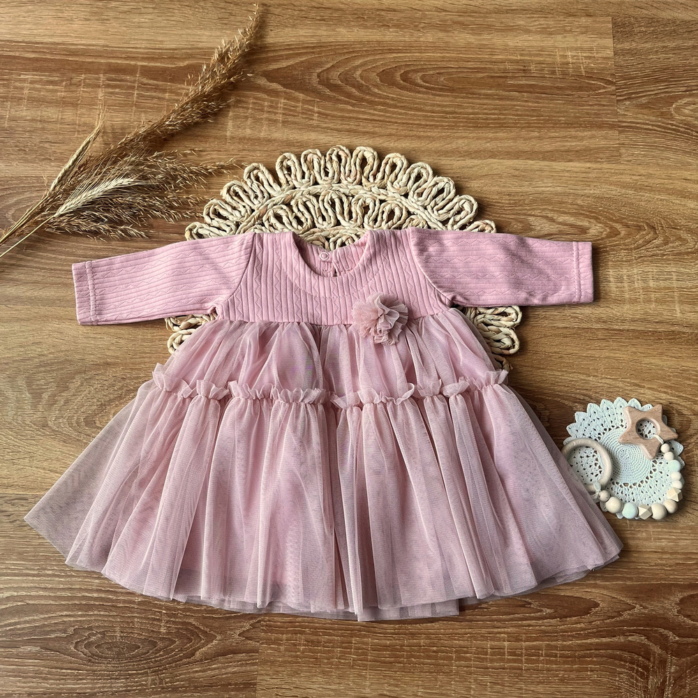 Urocza sukienka z długim rękawem. Wykonana z wysokiej jakości materiałów. Dół wykończony delikatnym tiulem.