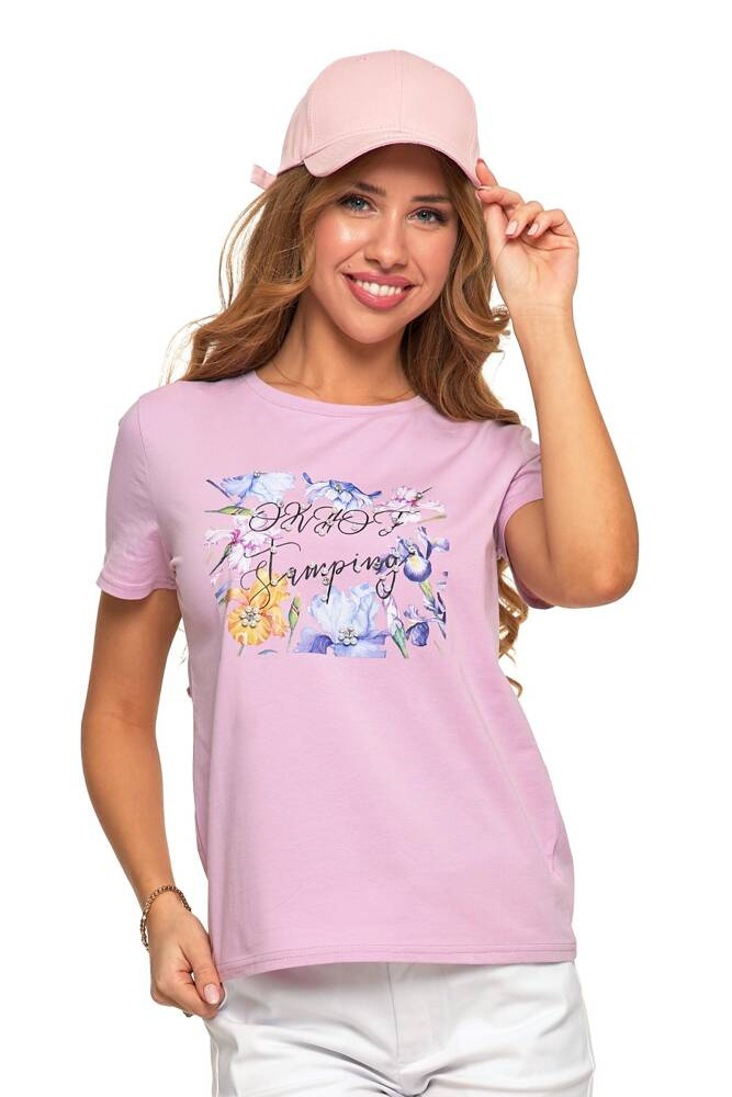 Koszulka damska w kolorze różowym, który dodaje delikatności i subtelności każdemu strojowi, nasza koszulka prezentuje się wyjątkowo uroczo. Jej okrągły dekolt oraz krótki rękaw sprawiają, że jest idealnym wyborem na letnie dni, zapewniając nie tylko wygodę, ale także świetnie prezentując się zarówno solo, jak i w połączeniu z różnymi warstwami odzieży.