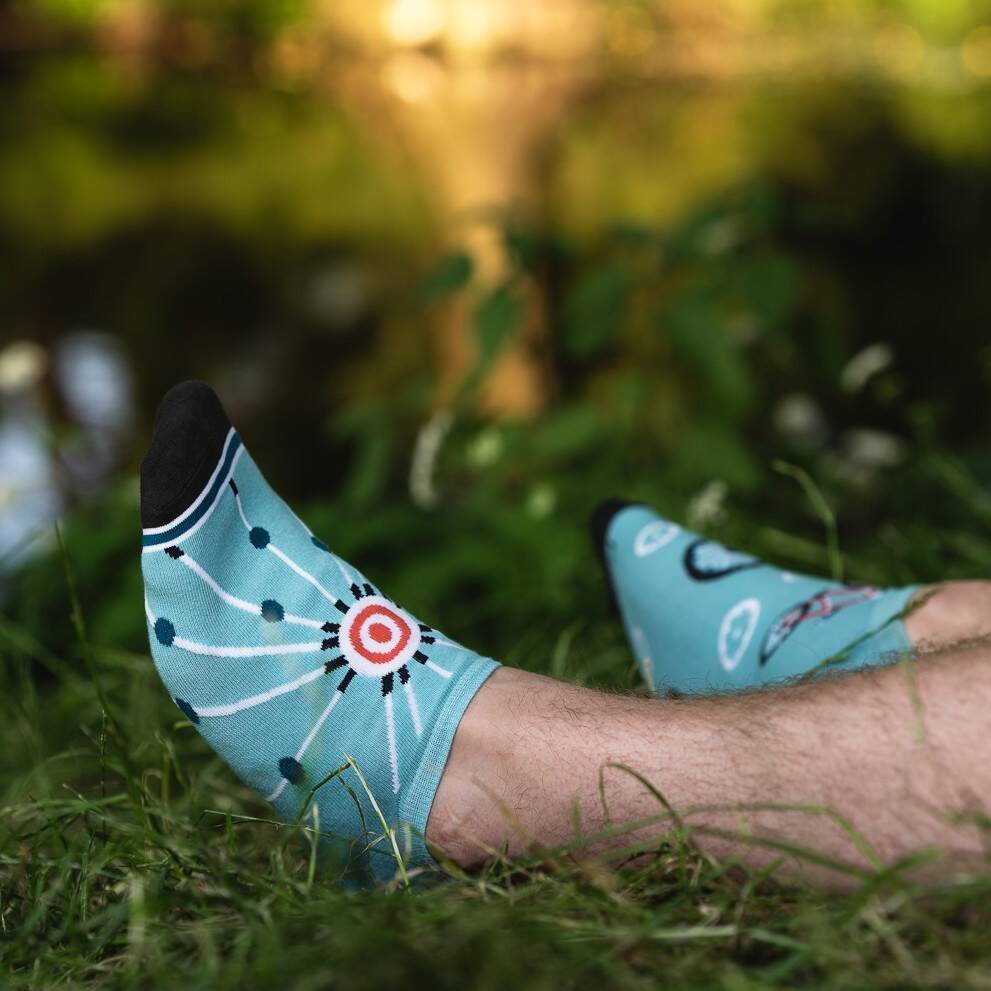 Bawełniane stopki męski, ozdobione oryginalnymi, kolorowymi wzorami.