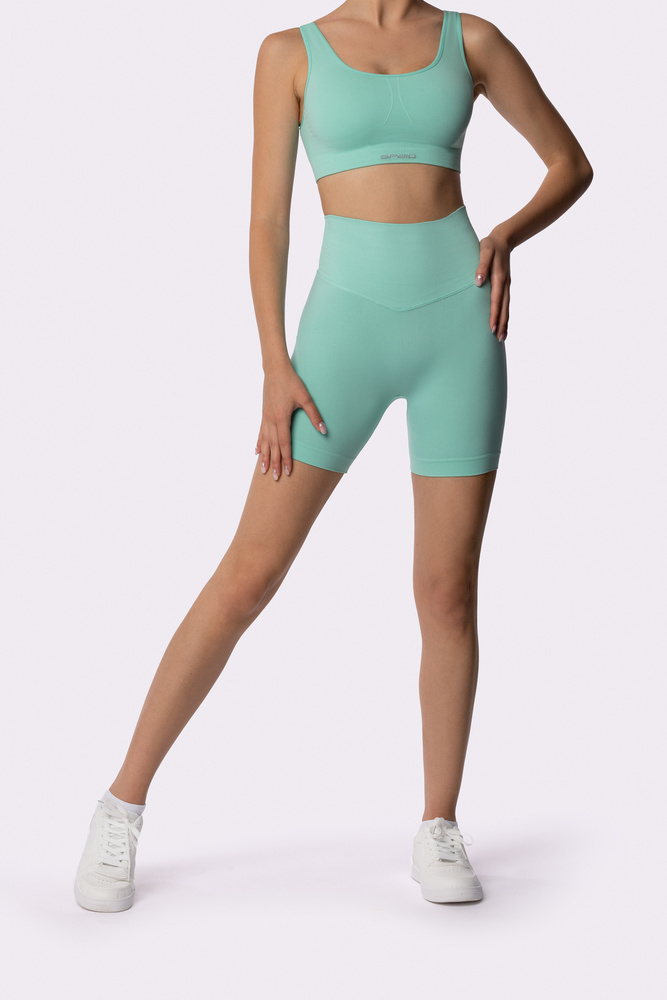 Spodenki sportowe wykonane w technologii seamless. Zminimalizowana ilość szwów nie krępuje ani nie ogranicza ruchów. Ściągacz V-line modeluje talię, a przerobienia na pupie double push-up podnoszą i modelują pośladki. Idealne w zestawieniu z pozostałymi produktami z linii ADAPT.