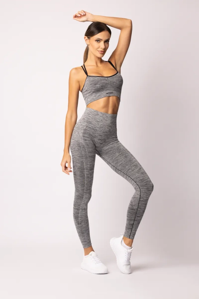 Legginsy sportowe wykonane w technologii seamless. Zminimalizowana ilość szwów nie krępuje ani nie ogranicza ruchów. Prosty ściągacz pięknie podkreśla talię, a dekoracyjne dziurkowania oraz przeszycia wzdłuż nogawek dodają uroku. Idealnie sprawdzi się w komplecie z pozostałymi produktami z linii MELANGE.