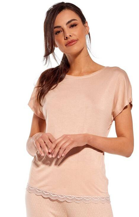Wygodna piżama damska wykonana z wysokiej jakości wyjątkowo miłego i miękkiego modalu. Koszulka z krótkim rękawem, dekolt okrągły.