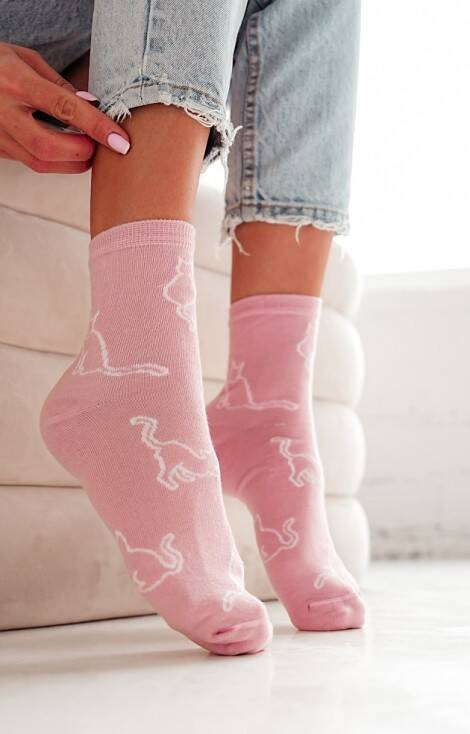 Bawełniane skarpetki damskie ozdobione wzorem kotka.