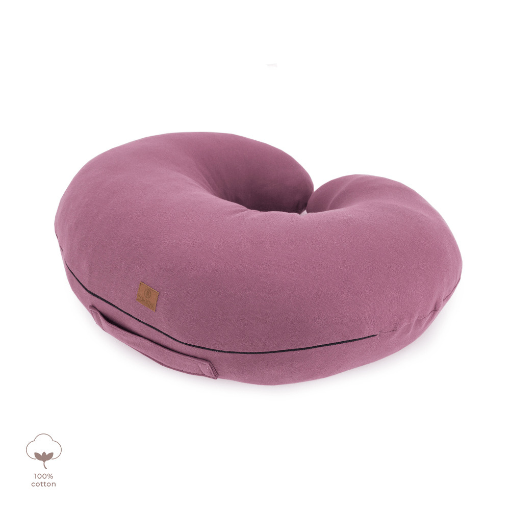 Rogal wykonany jest obustronnie z najwyższej jakości dzianiny bawełnianej, która nie spiera się i nie traci swoich właściwości nawet po wielokrotnym praniu. Poszewka zapinana na bezpieczny suwak jest łatwa do zdjęcia z poduchy i wyprania. W środku bawełniany rogal wypełniony antyalergicznym puchem silikonowym zapewniającym miękkość, a także sprężystość. Wewnętrzna część zapinana jest na niewielki suwaczek dający możliwość regulacji ilości wypełnienia. Dzięki temu poducha idealnie dopasowuje się kształtem i rozmiarem do maluszka i osoby karmiącej.