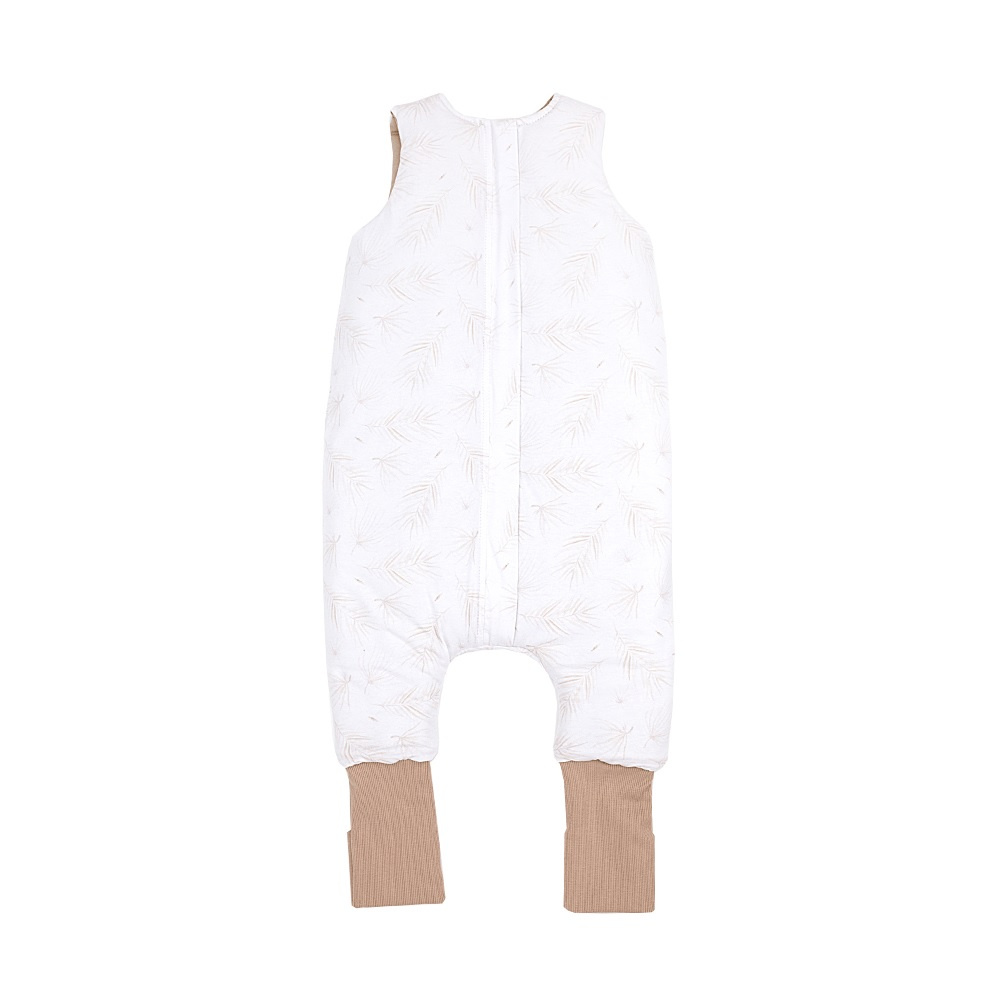 Śpiworek posiada długie nogawki z miękkiego bawełnianego ściągacza, do których dzięki mankietom można schować również stópki.