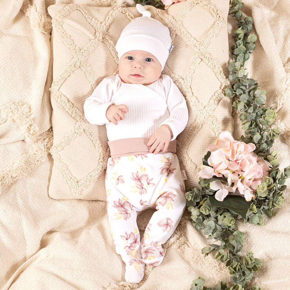 Zapytaj o produktWygodne i miękkie półśpioszki, uszyte ze 100% przewiewnej bawełny w kolorze kremowym w kwiatowy wzór. Wysoka jakość produktu została potwierdzona certyfikatem Oeko-Tex Standard 100 Tekstylia godne zaufania. Półśpioszki mają luźny fason i lekko obniżony stan by pomieścić pieluszkę, posiadają szeroki, bezuciskowy ściągacz w pasie zapewniający pełny komfort maluszkowi.