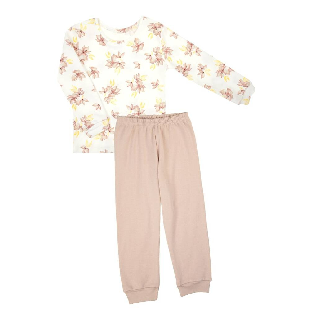 Zapytaj o produktBawełniana piżamka, z luźną bluzką z długim rękawem zakończonym ściągaczem. Spodnie w kolorze beżowym, posiadają w pasie wygodną gumkę, nie uciskającą brzuszka, która dodatkowo została przeszyta, aby zapobiec okręcaniu się. Dół nogawek zakończono ściągaczem. Bluzka z kremowej bawełny w kwiatowy wzór, rękawy zakończone ściągaczem. Bawełna, z której jest uszyta, posiada certyfikat Oeko-Tex Standard 100 Tekstylia godne zaufania.