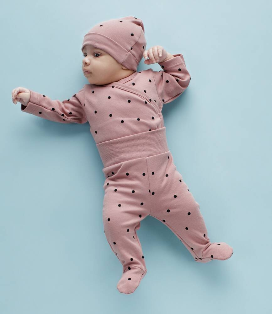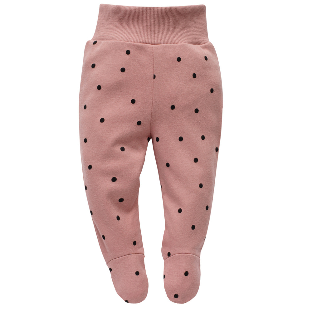 Półśpiochy niemowlęce to podstawowy element wyprawki dla noworodka. Są bardzo wygodne, a przy tym doskonale chronią stopy dziecka przed wychłodzeniem. W kolekcji Tres Bien zostały uszyte w 100% z miękkiej bawełny w kolorze écru, ozdobionej delikatnym nadrukiem czarnych kropeczek w stylu francuskim. Nieuciskający, szeroki ściągacz w pasie utrzymuje ubranko w odpowiednim miejscu, ale nie uwiera przy tym dziecka w brzuszek. Półśpiochy mają anatomiczny fason, dzięki czemu nie krępują mu ruchów. Dodatkowo nad piętkami wszyliśmy specjalne gumki, które uniemożliwiają zsuwanie się stópek dziecka z półśpiochów podczas codziennej aktywności. Wykonane są w Polsce z delikatnych i starannie przetestowanych materiałów. W kolekcji Tres Bien występują również w kolorze różowym.