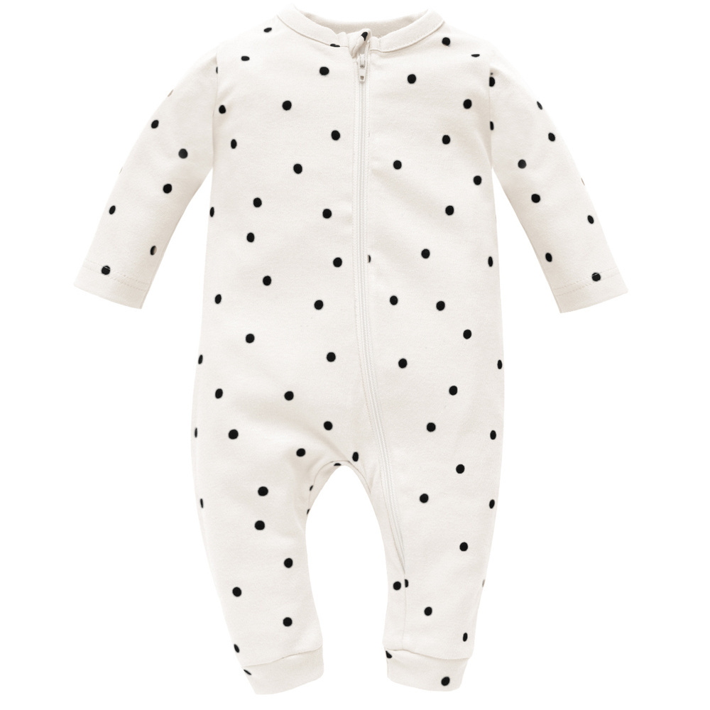 Pajacyk bez stópek, zasuwany w kolekcji Tres Bien uszyty został z delikatnej 100% bawełnianej dzianiny w kolorze écru, ozdobionej delikatnym nadrukiem czarnych kropeczek w stylu francuskim. Zapinanie na suwak umożliwia szybkie i wygodne przebieranie dziecka. Suwak zabezpieczony jest łezką przy szyi i plisą od wewnętrznej strony, żeby nie urazić skóry dziecka. Nogawki wykończone są elastycznym materiałem, dzięki czemu ubieranie dziecka jest bardzo wygodne. Wszyty w kroku klinik sprawia, że ubranko dobrze układa się na dziecku noszącym pieluszkę. Warto o nim pamiętać kompletując wyprawkę dla córeczki, sprawdzi się w codziennym użytkowaniu lub jako piżamka. Wyprodukowany jest w Polsce. Pajacyk występuje również w kolorze różowym.