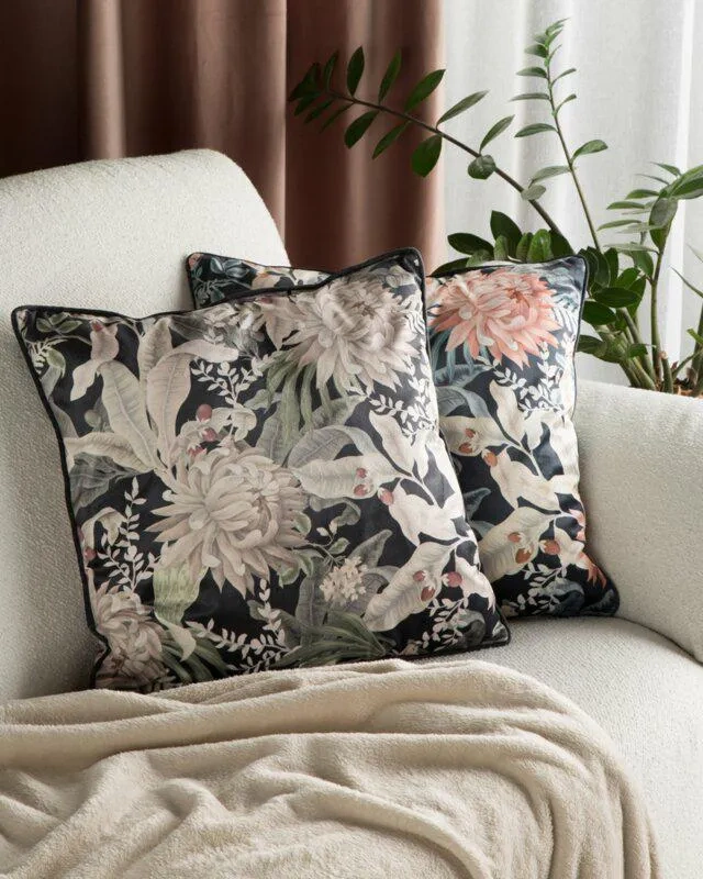 Velvet 113 poszewka welurowa kwiaty Eurofirany czarny/pomarańczowy