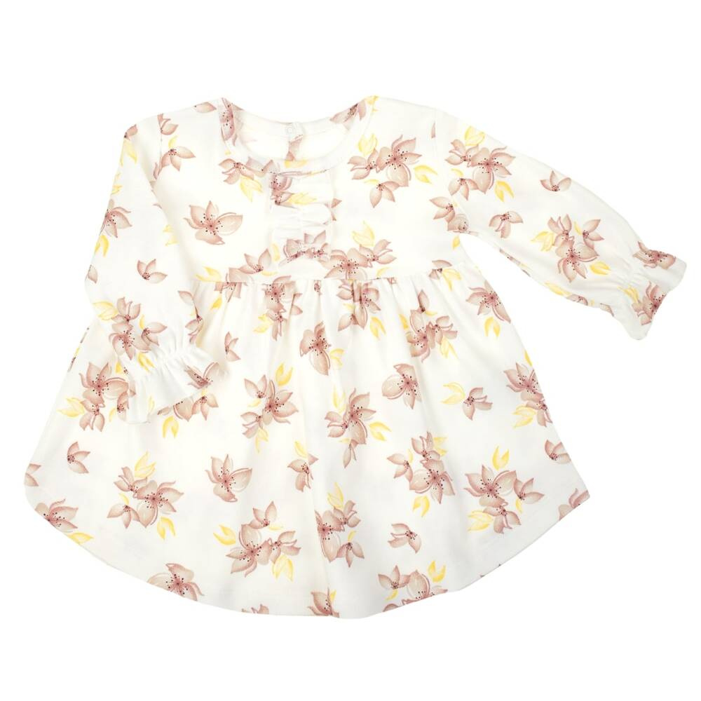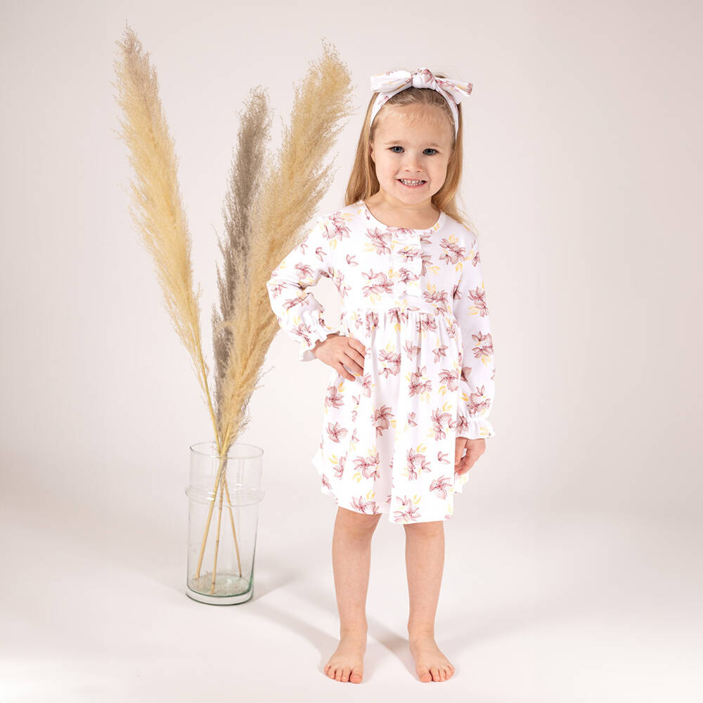 Zapytaj o produktStylowa sukienka z długim rękawem dla dziewczynki, wykonana z kremowej bawełny w kwiatowy wzór. Materiał jest całkowicie bezpieczny dla skóry dziecka. Produkt zdobi naszyte marszczenie na przodzie, oraz zapięcie typu łezka na tyle. Wykorzystano bezniklowe napy. Rękawki w dolnej części wykończone są gumką ,co daje nam efekt falbanki. Sukienka jest również marszczona na linii karczka. Idealna na różne okazje.