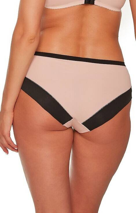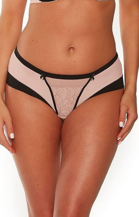 Efektowne figi damskie o pełnym klasycznym kroju. Szerokie na biodrach, ozdobione haftem. Tył gładki z łączonych kolorów.