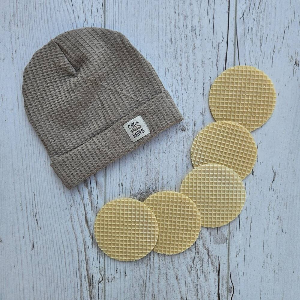 Czapka niemowlęca z przyjemnej w dotyku bawełny. Dobrze przylega do główki dziecka, ale jej nie uciska. Czapka zapewni mu odpowiednią ochronę uszu przed chłodem podczas spacerów, a także po kąpieli. Będzie idealnym uzupełnieniem każdej stylizacji z kolekcji Waffel.
