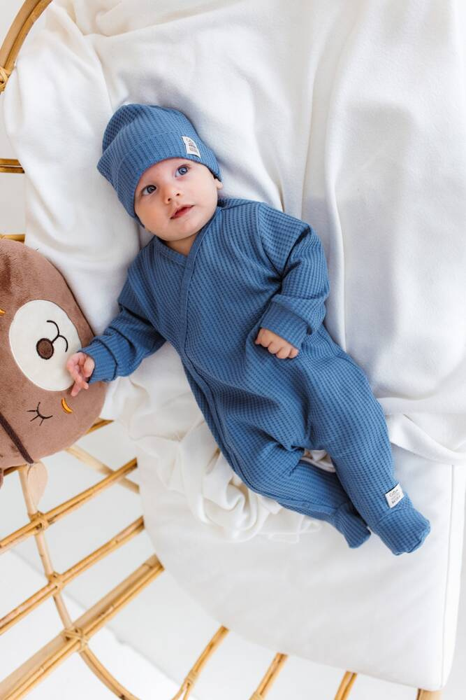 4249D "Natural Waffel" Czapeczka niemowlęca Makoma denim