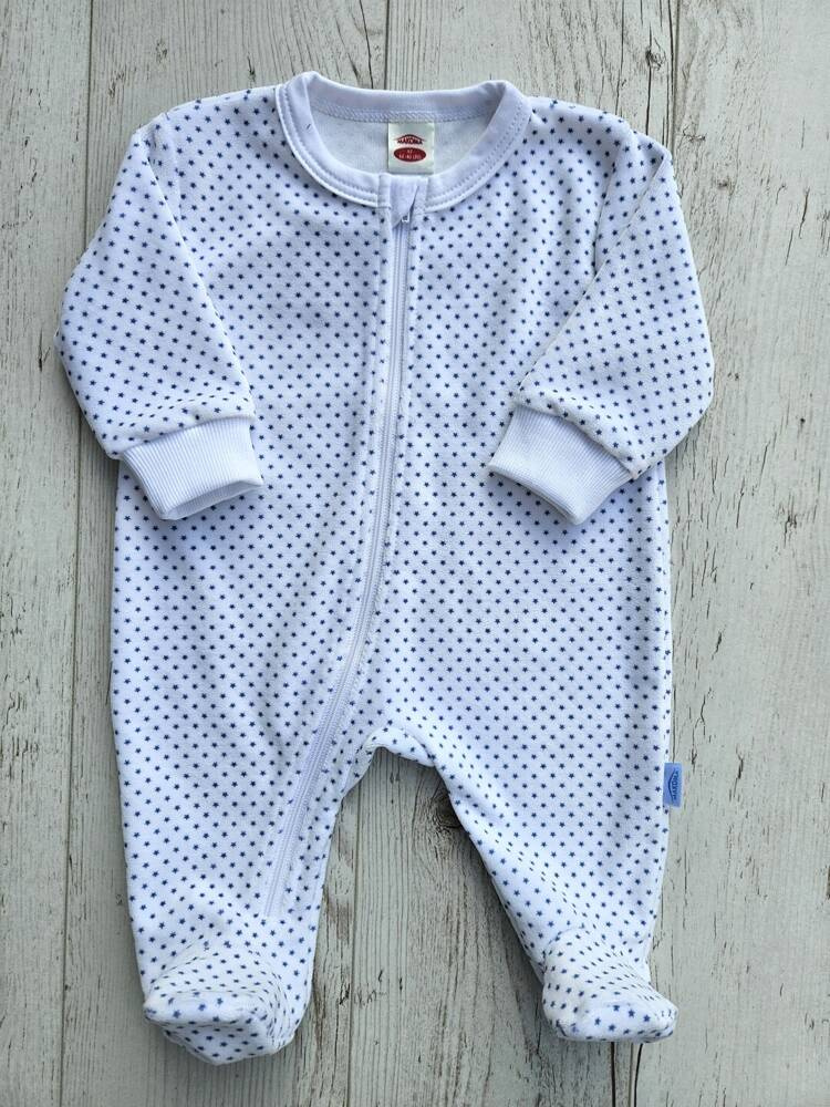 02250 "Blue Stars" Pajac niemowlęcy welurowy Makoma niebieski