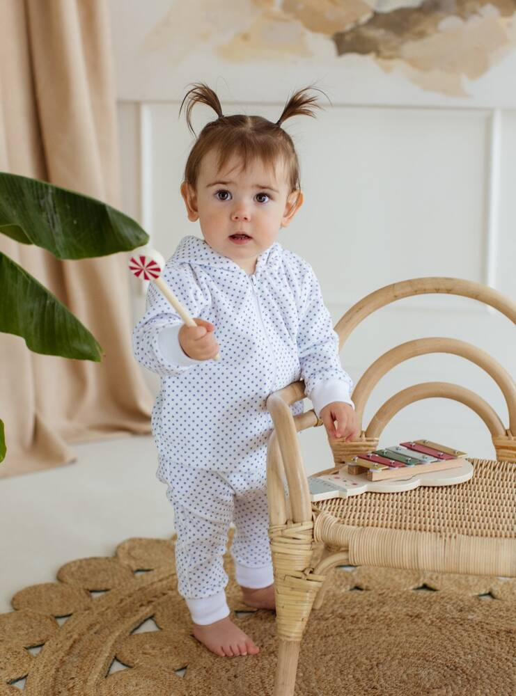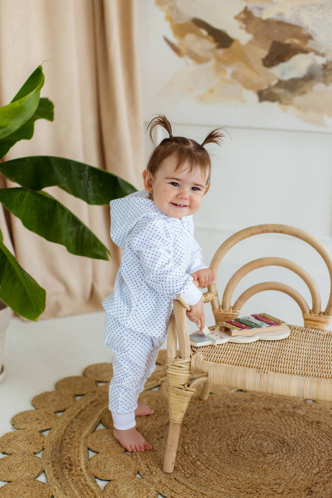 Efektowny komplet  wykonany z wysokiej jakości miłej w dotyku bawełny. Rękawki oraz nogawki zakończone ściągaczem. Spodnie dresowe typu pumpy. Idealnie sprawdzi się podczas spacerów w chłodniejsze dni.